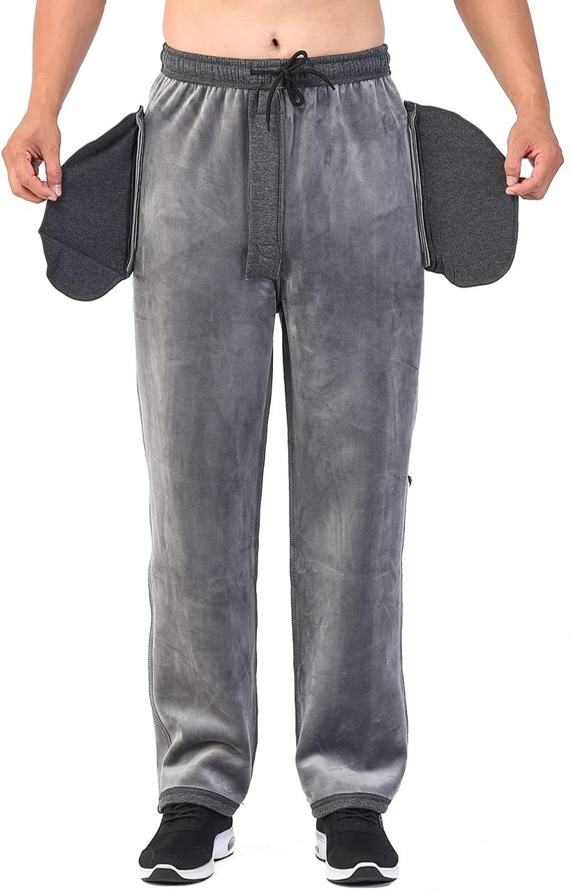 Men’s Open-Bottom Sports Pants Sweatpants Trousers Front Zip Fly Closure