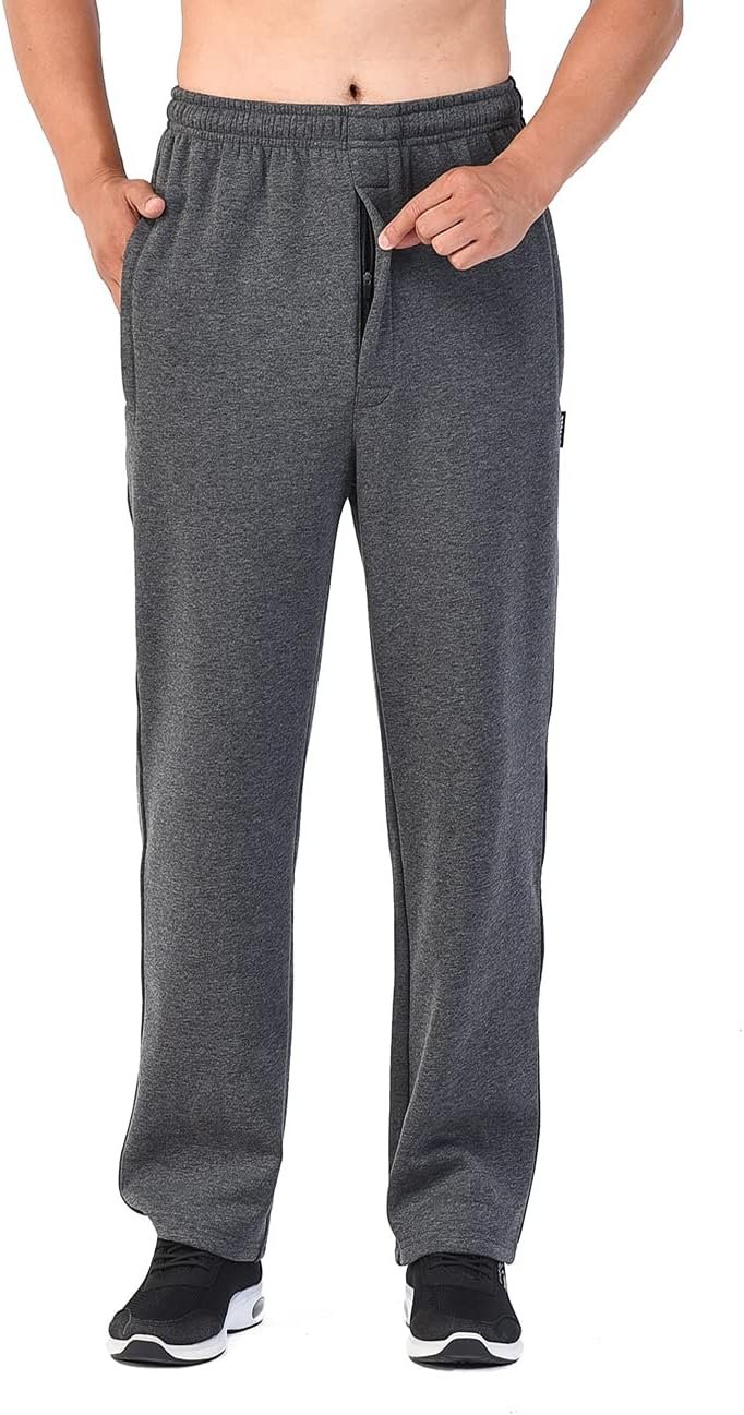 Men’s Fleece Open Bottom Sweatpants with Pockets, Relaxed Fit, Moisture Wicking, Breathable